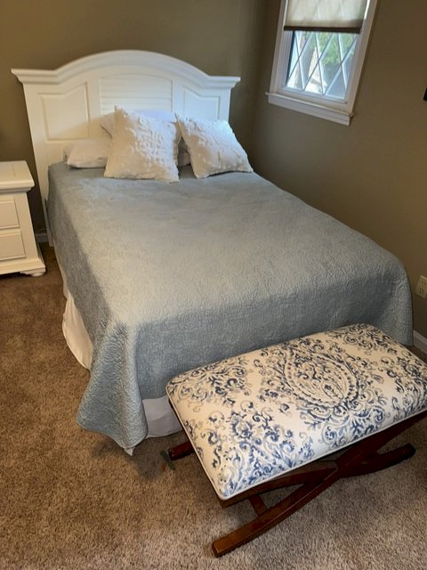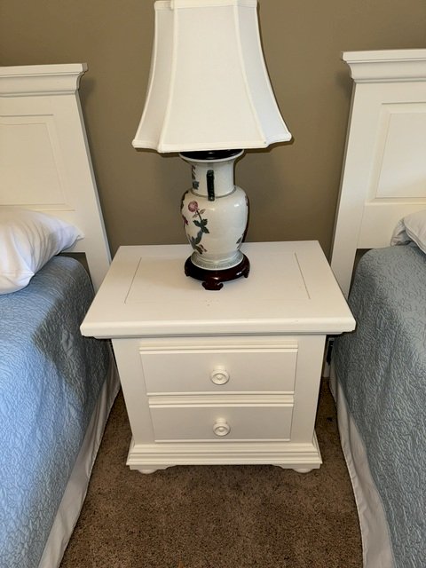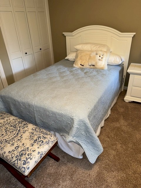Twin Bed with White Wooden Headboards etc.
