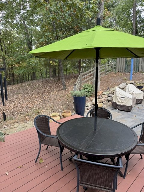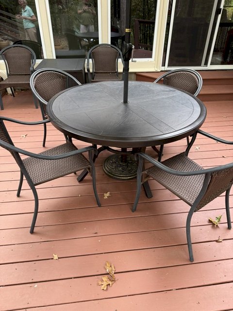 Cute Outdoor Table with 6 Chairs and a lime green umbrella