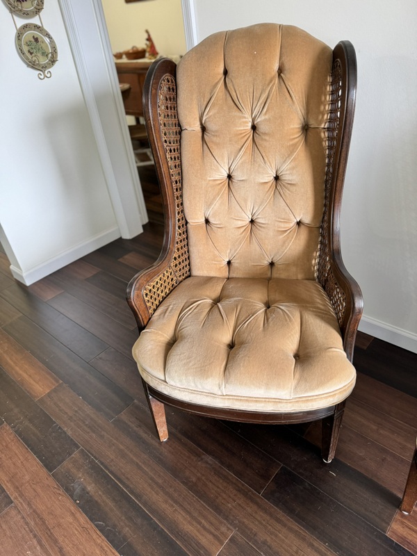 Vintage LEWITT MCM Cane Winged Back Chairs (pair)