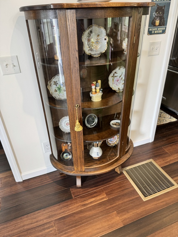American Cherry Bowfront Curio Cabinet (Henshaw's, 1928)